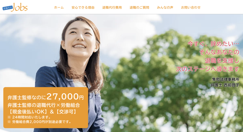 退職代行Jobsは、顧問弁護士の監修と労働組合の提携が安心ポイントです。